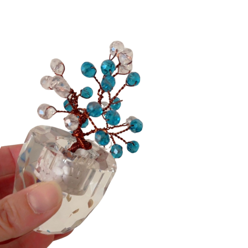 شجر مكتبي صغير 12 سم قاعده زجاجيه كريستاليه