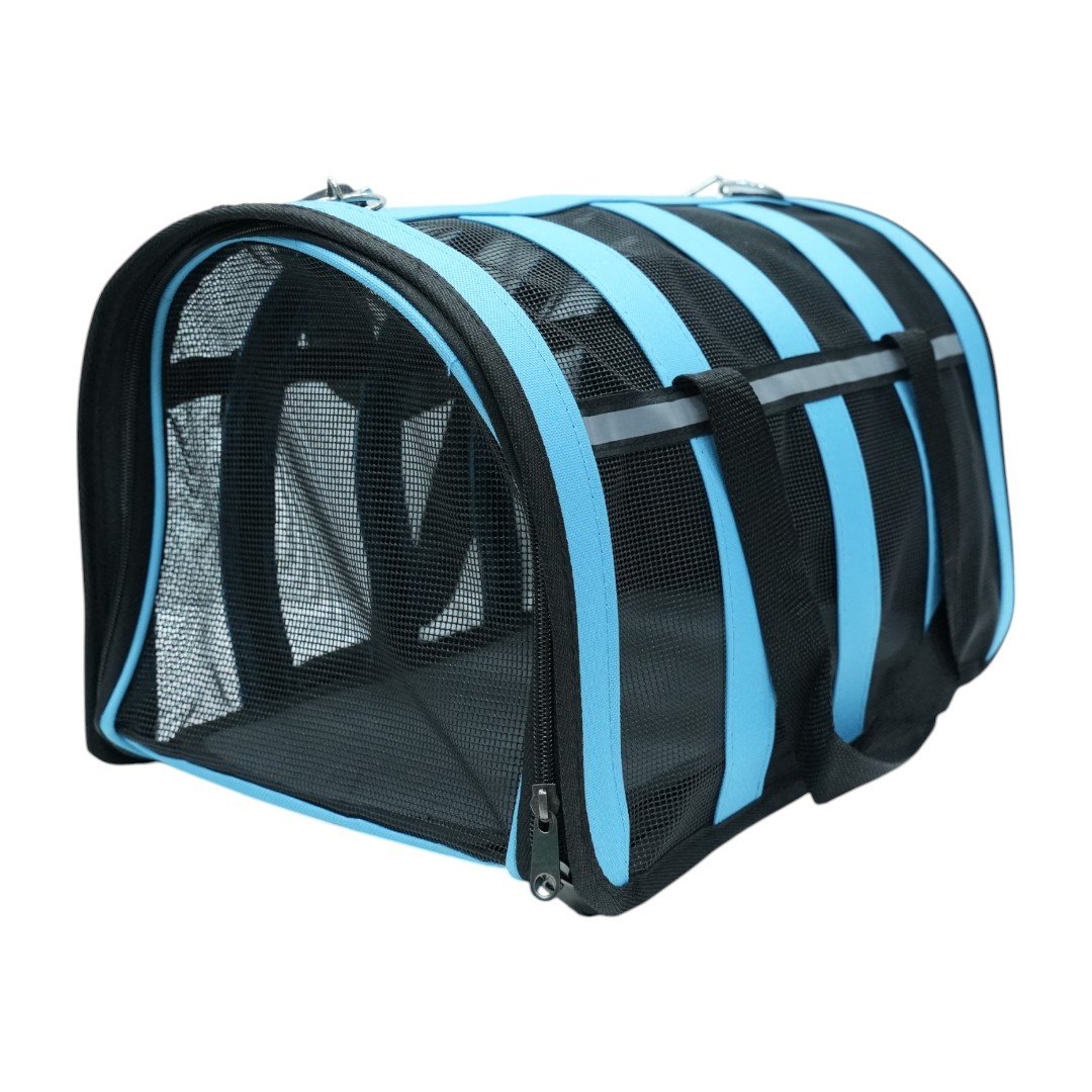Crafted from durable mesh material, this blue carrier ensures excellent ventilation. With a comfortable shoulder strap and sturdy zippers, it’s ideal for short trips or vet visits. The mesh allows pets to observe their surroundings, keeping them relaxed while traveling.