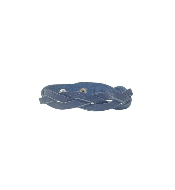 A bold bracelet, made of genuine braided leather in a rich blue tone, blending rustic charm with contemporary edge.