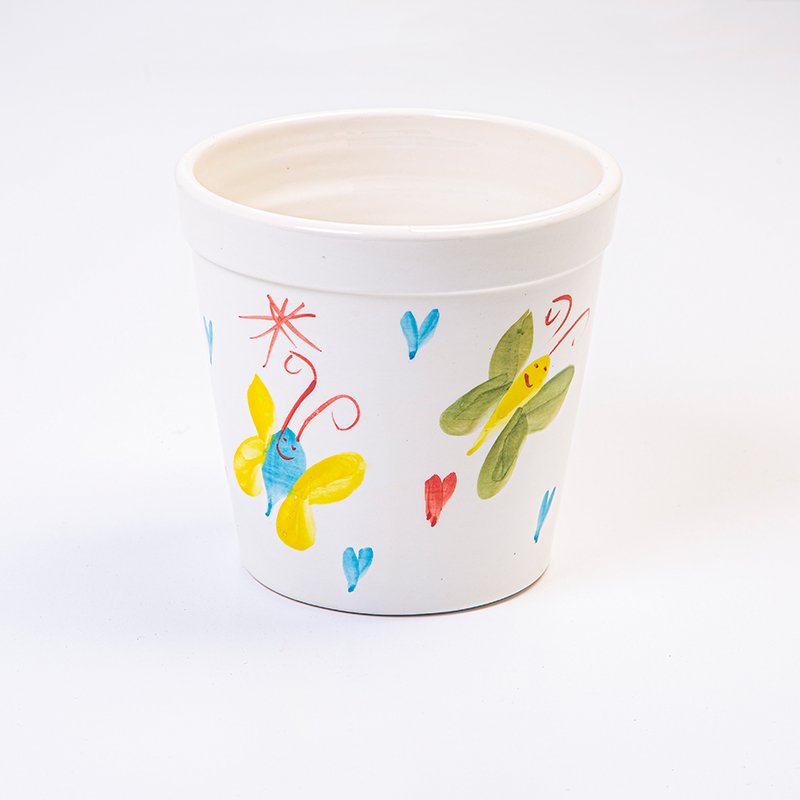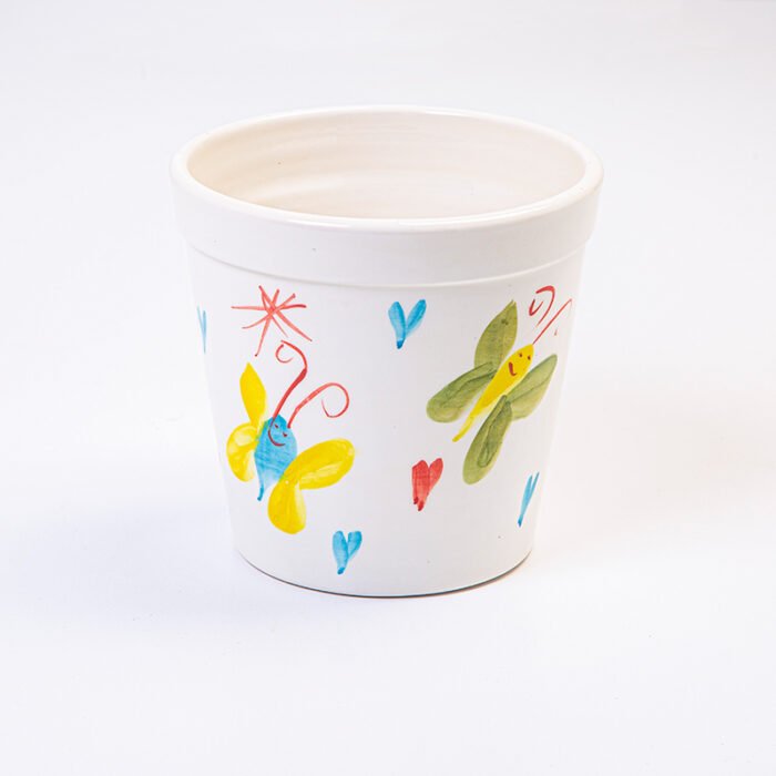 Ceramic plant pot design inspired from the drawings of pediatric cancer patients at KHCC – butterflies.