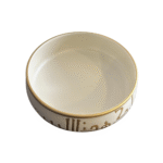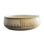 matte wite chocolate bowl decorated with the phrase ”allahumma barik hatha Al-bayt” in cold gold 35 cm in diameter