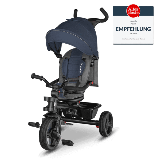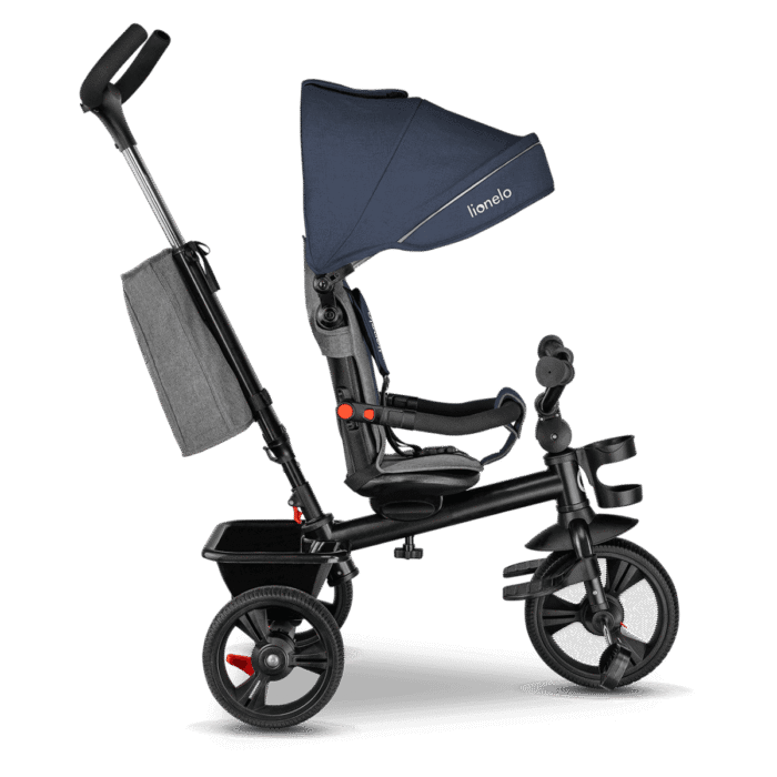Security of riding is provided by?3-point belts?with covers and a soft bow covered in a high-quality foam. The product is equipped with anti-skidding pads on the handlebars and?fluorescent elements on the sunshade, thanks to which the tricycle is better visible. The product also comes with 2 brakes on the rear axle. Haari tricycle has undergone a multi-stage verification and tests in the independent certifying laboratory ? Intertek. It meets requirements of the?European security standard ? EN 71.