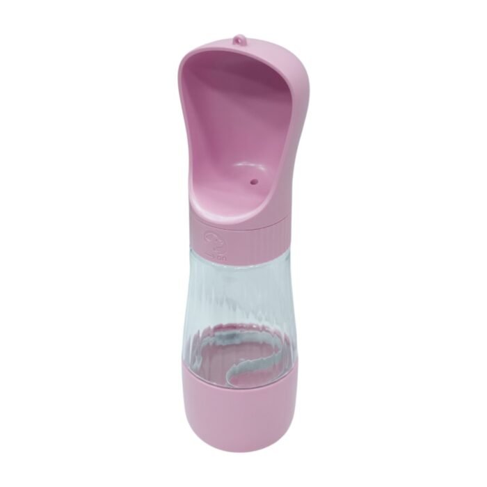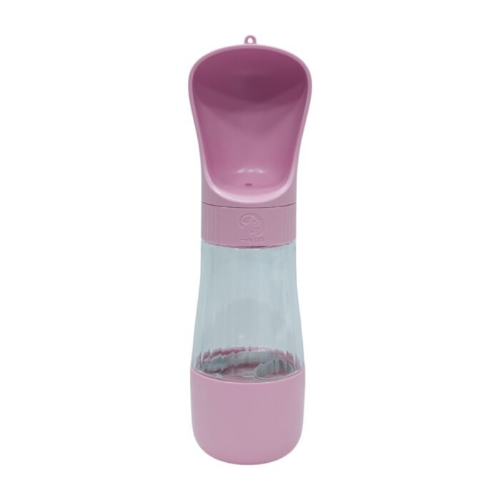 This pink portable pet water bottle is designed for easy hydration on the go. Its scoop-shaped cap serves as a convenient drinking bowl for pets, offering a comfortable way for them to drink while out on walks or during travel. The bottle has a secure leak-proof lock, ensuring no spills when carried in a bag or car. Its lightweight and portable design make it perfect for outdoor adventures, keeping your pet refreshed and hydrated wherever you go.