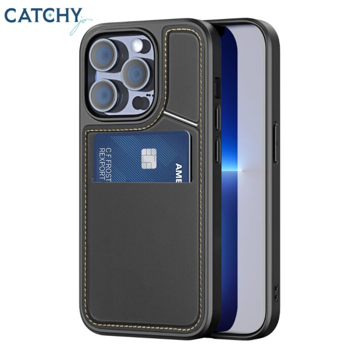 - It’s comfortable to hold the case with optimized frame in hand. The back of this case is coverd by a layer of PU leather which feels smooth. It has two card holders, one on the outside and one is on the inside, the inside one has an anti-theft function.