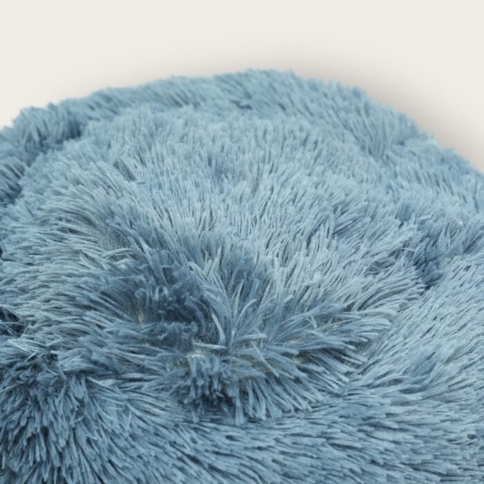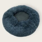 This round plush pet bed in a rich dark teal shade provides a cozy, comforting environment for your pet to relax. The ultra-soft and fluffy material creates a warm, secure space that encourages snuggling, helping to relieve anxiety and stress in pets. The bed’s round, donut shape offers orthopedic benefits, making it a great choice for older pets or those with joint issues.