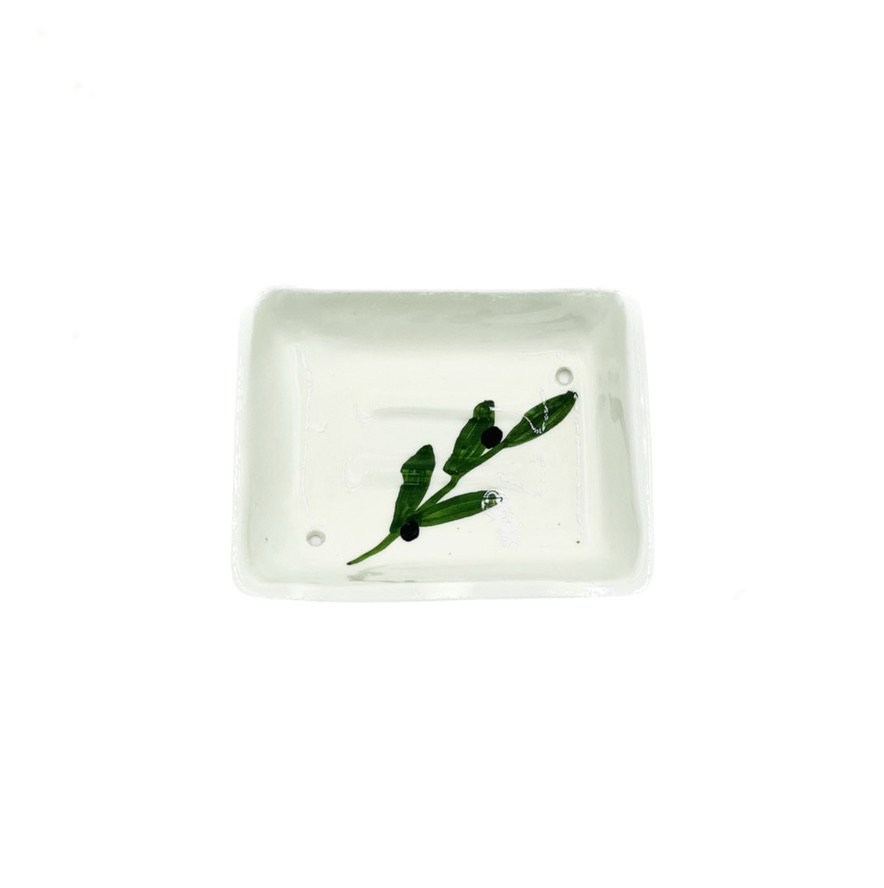 ” The perfect way to maintain soap bars dry as it is built with draining holes, and is decorated with olive branch hand drawing. Beautiful ceramic pieces crafted by the hands of local community women of Dibeen.