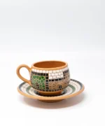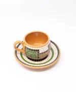 فنجان قهوة تركي مزخرف برسمة البيوت يأتي مع صحنه المطابق