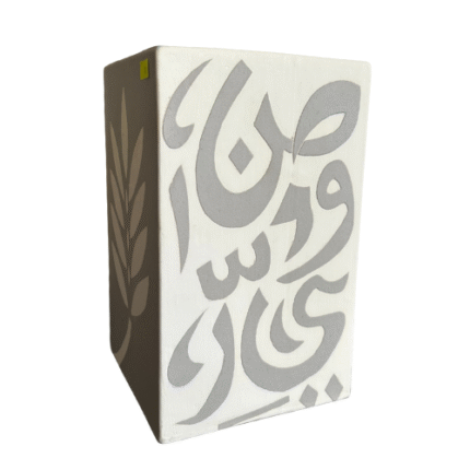 plate with a 50 cm diameter, crafted with glaze engraving technique , featuring a map of Jordan made from randomly arranged arabic letters in an artistic design